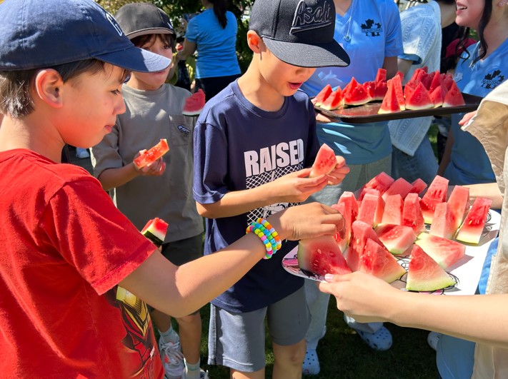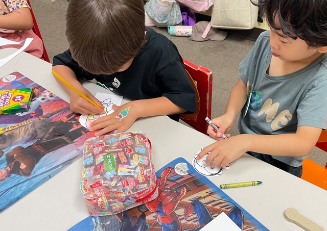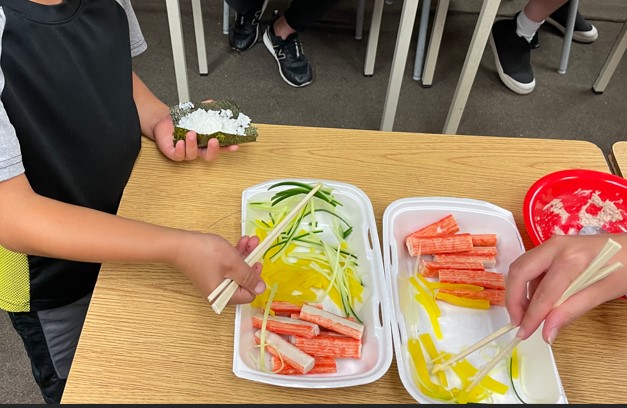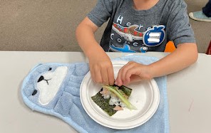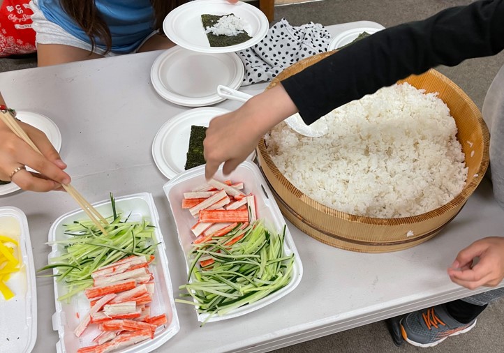サマースクールでの昼食はお家の方が用意してくれたお弁当の日が3日間、あとの2日間は手巻き寿司パーティー・ホットドックパーティーの日を設けています。子ども達は、この昼食の時間をとっても楽しみにしています。
