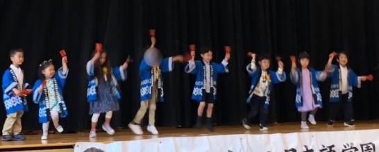 卒園式の後には、2歳児クラスから5歳児クラスまでの幼稚園科全クラスが参加する学習発表会が行われました。各クラスで練習したお遊戯や踊り、歌や合奏などを披露しました。