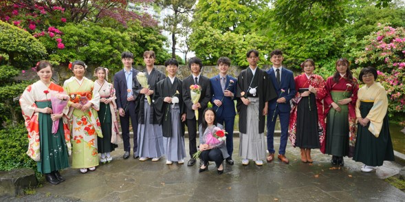 会場には、スーツやドレスを着た卒業生が次々と集まりました。その中でも、高等科上級の卒業生は、袴や振袖・スーツとさまざまな美しい装いで、この晴れの日の舞台を華やかに彩りました。