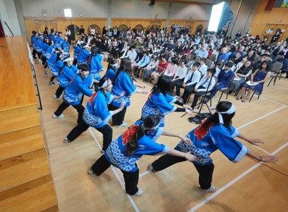 高等科初級・中学科2年の生徒がソーラン節でエールを
