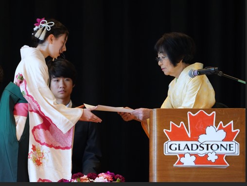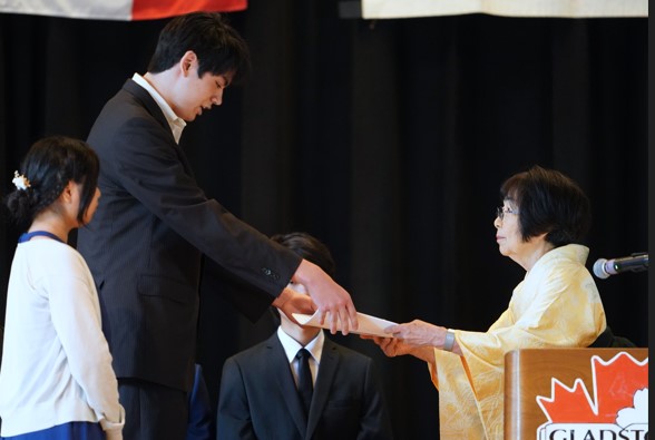 毎年多くの卒業生を送り出しているグラッドストーン日本語学園。学園長は謝辞の中で、日系コミュニティーで活躍する卒業生について触れ、本学園を巣立ち社会の中で日本とカナダの架け橋となって活躍してくれていることを誇りに思うと述べました。今年も12名の高等科卒業生が新たな世界へと羽ばたいていきました。みなさんのこれからの活躍が楽しみでなりません。