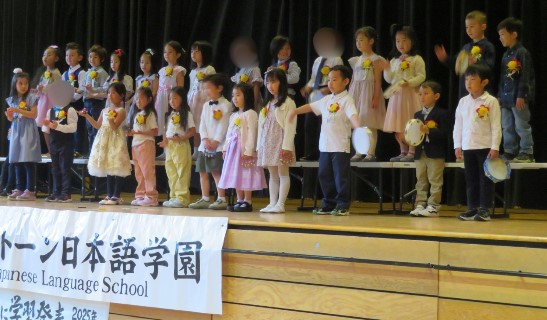 また、同日の午前中にはグラッドストーン日本語学園幼稚園科の卒園式並びに学習発表会を行いました。継承語5歳児クラスと基礎科5歳児クラスの計30名が村上学園長より卒園証書を授与されました。